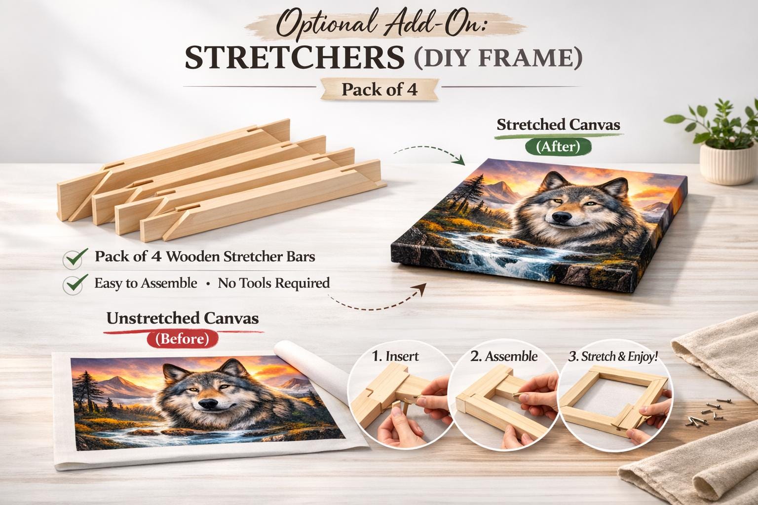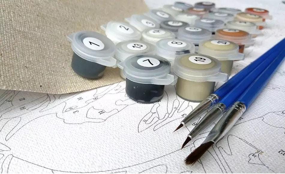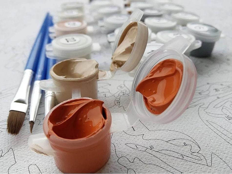 - Package includes: 3 paint brushes, all required paint, printed canvas, print of the picture, wood frame (if you selected this option).
