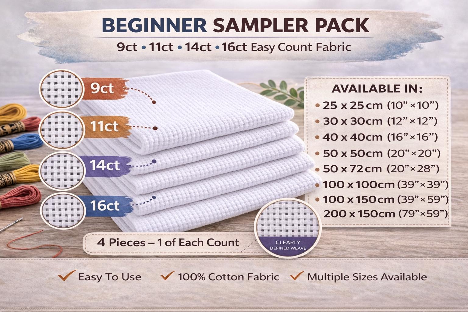 • 9ct → Very large squares (perfect for first-time stitchers)