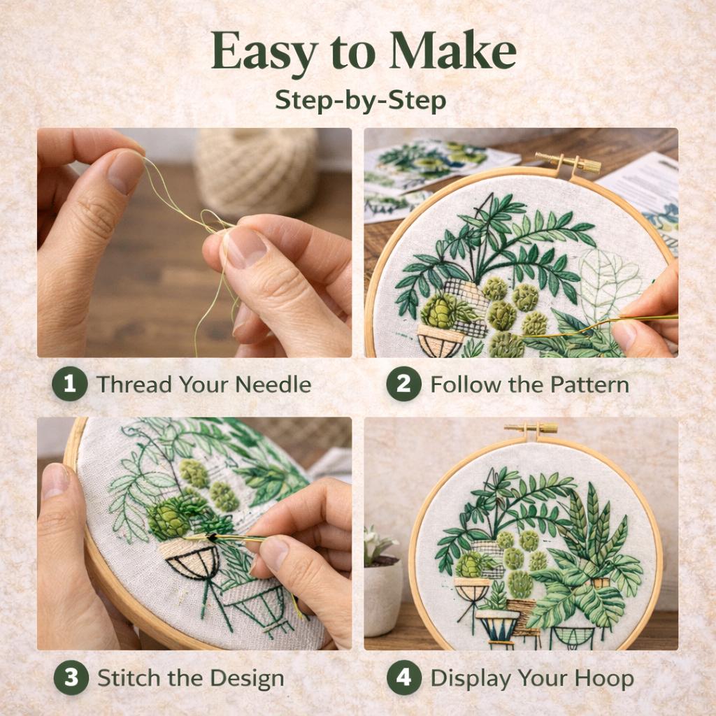 Each design features modern greenery, indoor plants and cottagecore-inspired motifsâperfect for stitching, gifting, or decorating your home.